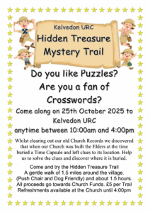Do you like Puzzles? Are you good at Crosswords? We have once again devised another Treasure Trail around the village for you to investigate and solve .Come along on 25th October anytime from 10:00am – 4:00pm. Come and try the Family Mystery Trail Mk2, a gentle walk around the village of 1.5 miles (Push Chair and Dog Friendly). £5 per trail plus a donation towards refreshments. All proceeds go towards Church Funds.